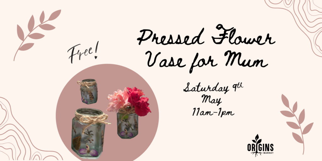 Come along and make Mum a Pressed Flower Jar for Mothers Day! Entry is free with no booking required. Drop in between 11am-1pm to make Mothers Day a little extra special this year for Mum.